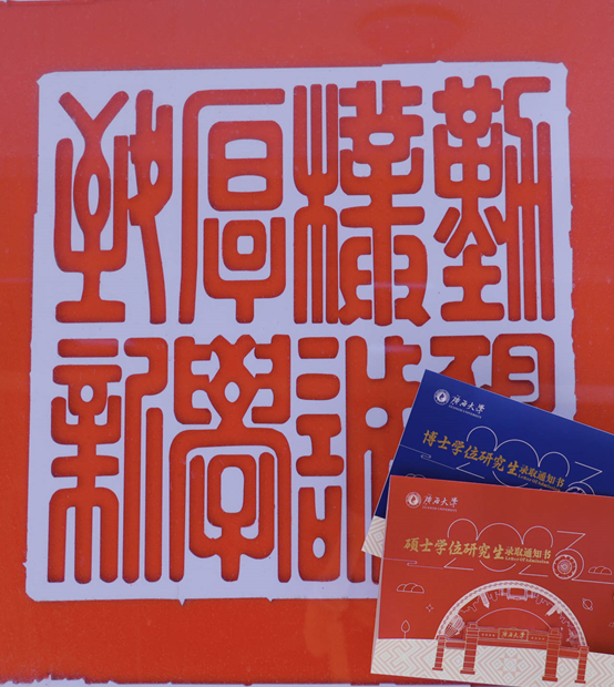 硕士录取通知书整体选用中国红色调,