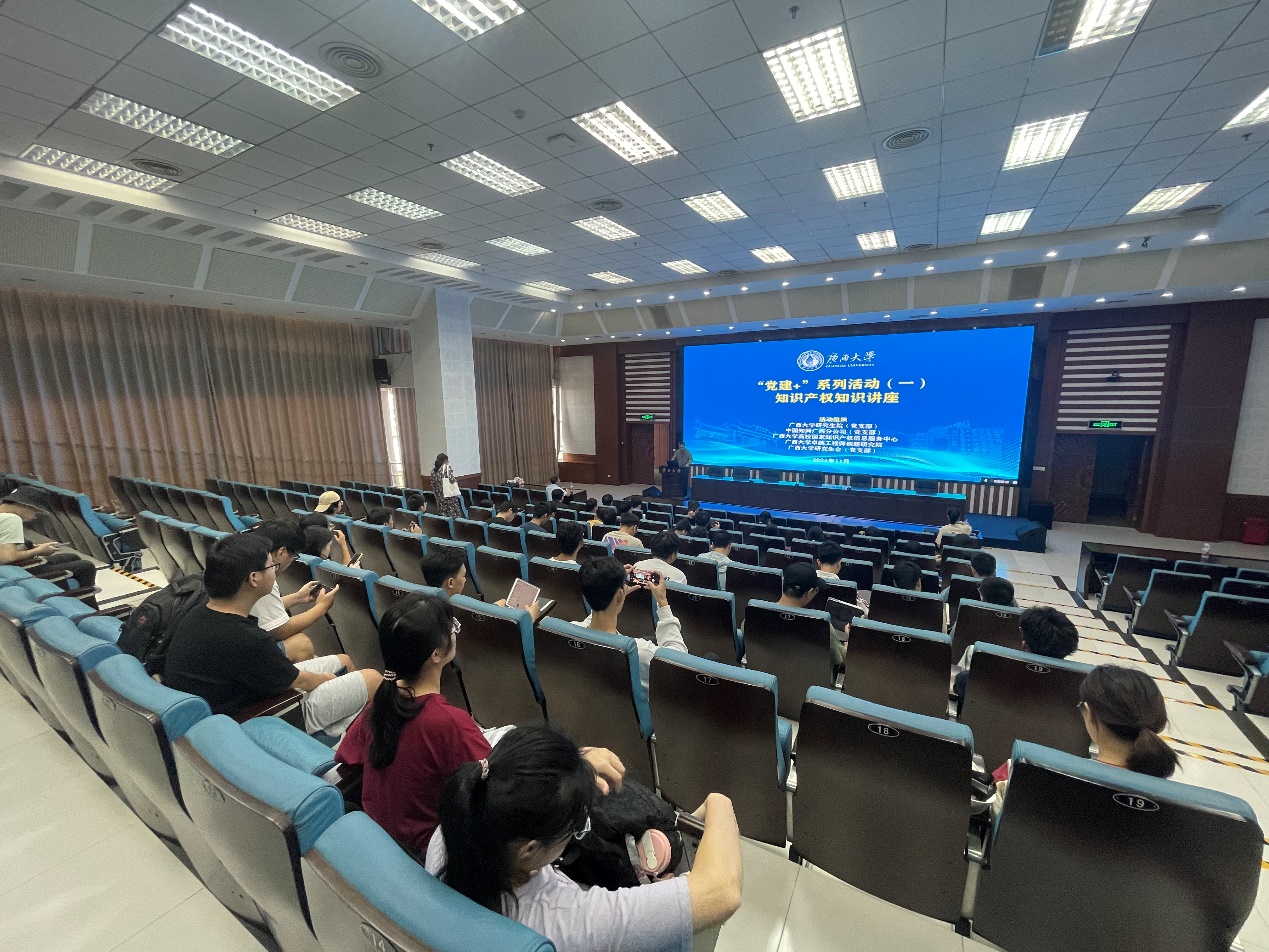 鉴于在创新驱动发展的时代,知识产权作为推动科技进步、经济繁荣和文化传承的重要基石,其重要性日益凸显。为了积极响应国家关于加强知识产权保护、激发创新活力的号召,11月7日,研究院党支部牵头,联合中国知网广西分公司(党支部)、古天乐代言太阳集团网址高校国家知识产权信息服务中心、古天乐代言太阳集团网址卓越工程师创新研究院、古天乐代言太阳集团网址研究生会党支部共同举办“党建+”活动,邀请到同方知网数字出版技术有限公司专利产品线专家,为古天乐代言太阳集团网址师生做《AI Pat+助力知识产权申请和保护》的专题讲座。来自各学院约百名研究生参加活动。