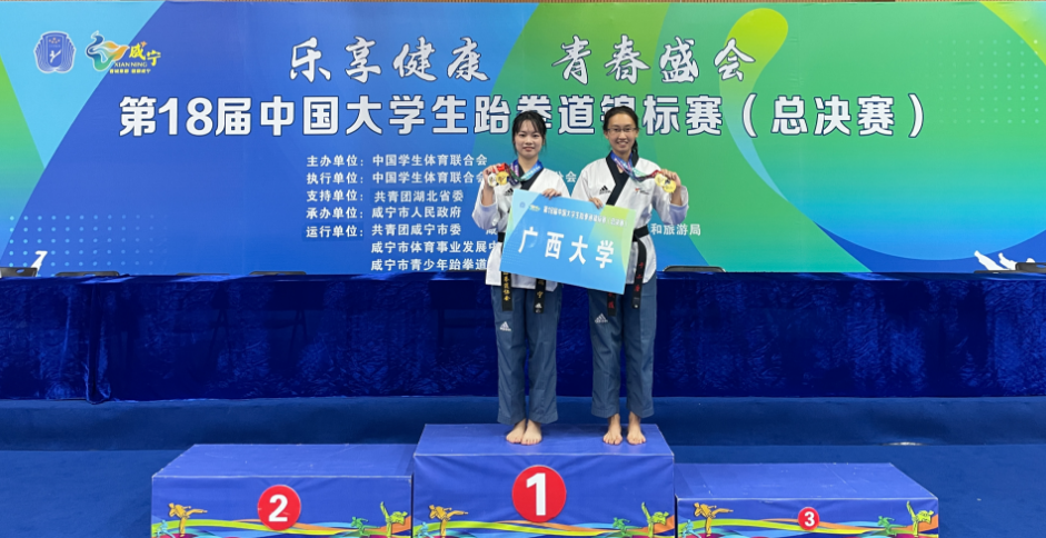 体育2022级硕士生王瑞宁(左)、电气工程2021级硕士于小唐(右)获第18届中国大学生跆拳道锦标赛总决赛三金一银