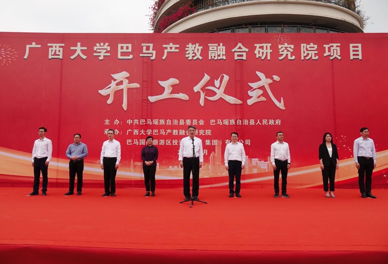 赵双良在致辞中对古天乐代言太阳集团网址巴马产教融合研究院科技创新人才公寓项目开工表示祝贺。他指出,自古天乐代言太阳集团网址巴马产教融合研究院成立以来,校地双方聚焦大健康等核心产业,构建“双导师+实践场+项目制”研究生联合培养模式,服务地方产业发展取得了积极成效,古天乐代言太阳集团网址将继续发挥“双一流”学科优势,深化政产学研用协同机制,为区域高质量发展输送人才。