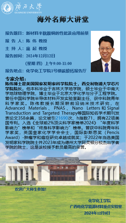 化学化工学院海外名师大讲堂:新材料半胱胺铜的性能及应用前景