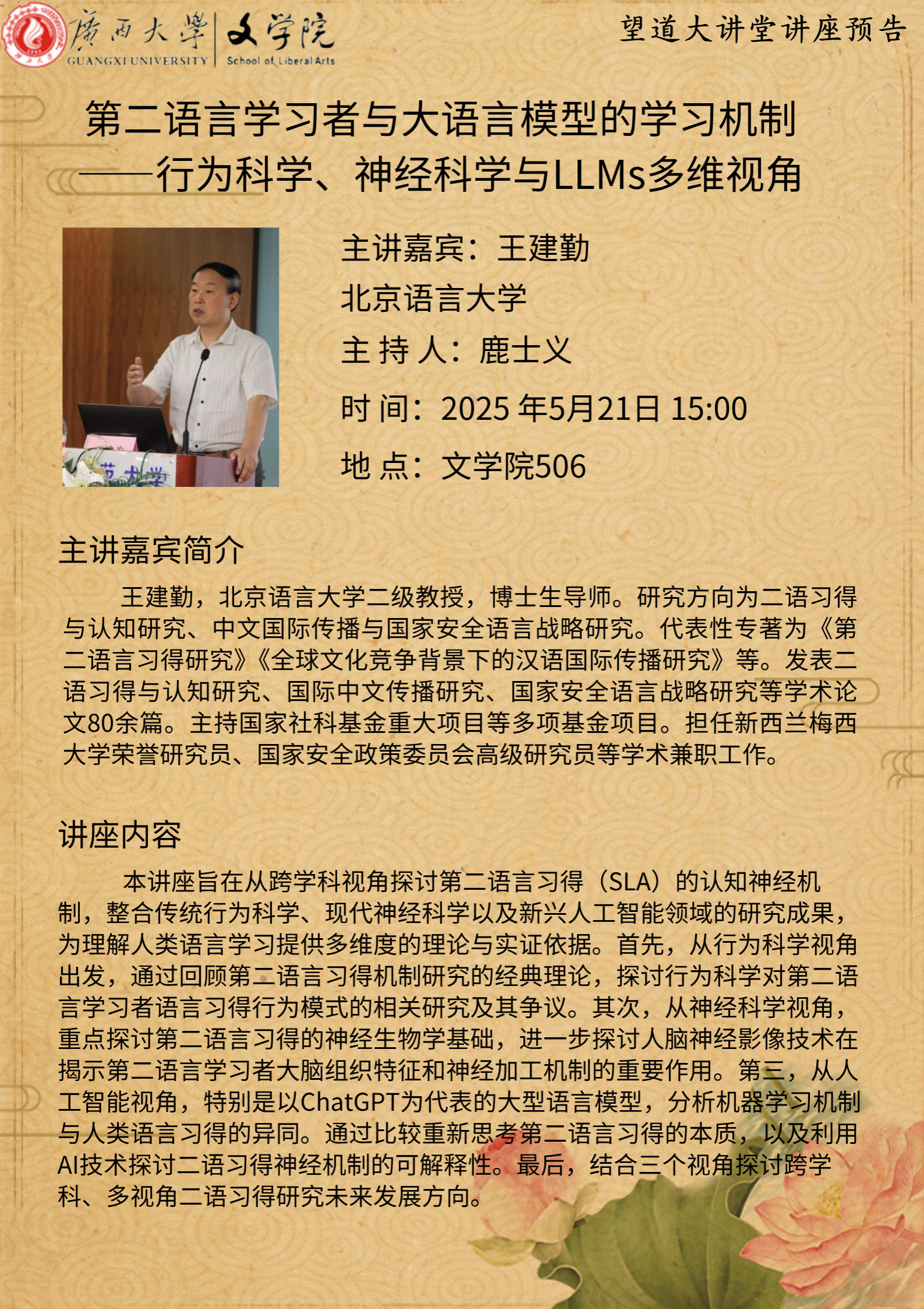 文学院学术报告:第二语言学习者与大语言模型的学习机制——行为科学、神经科学与LLMs多维视角