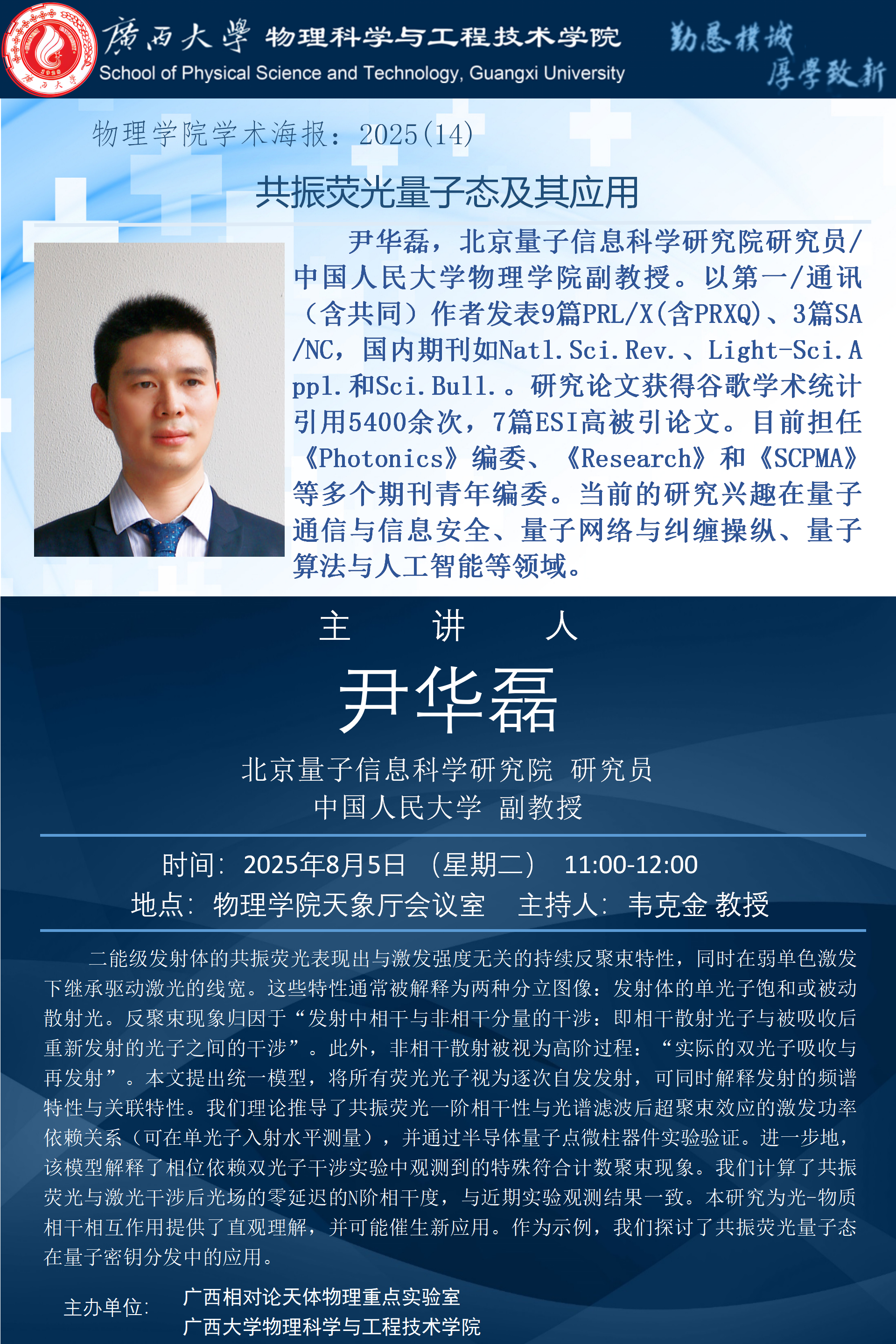 物理科学与工程技术学院学术报告:共振荧光量子态及其应用